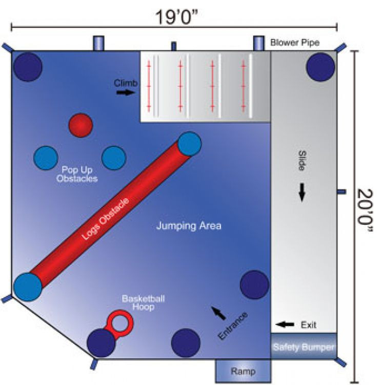 - OCCUPANCY: A maximum of 5-6 kids of equal size at one time for bounce houses, and 1 person at a time for slides is what most inflatable manufacturers recommend.
